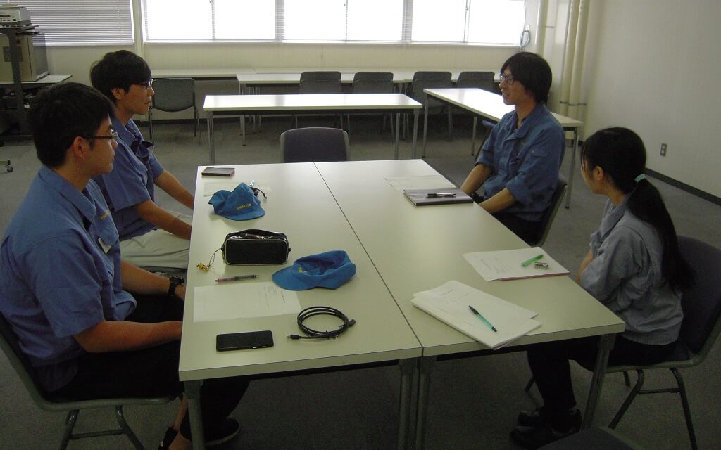 座談会では、年齢の近い若手社員に「仕事のやりがい」や「働いて成長したこと」など質問していました。
