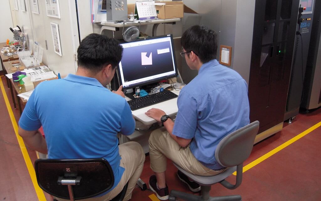 2次元/3次元図面の作成では、専用ソフトの使い方などを指導担当の社員に教えていただきながら図面を作図していました。