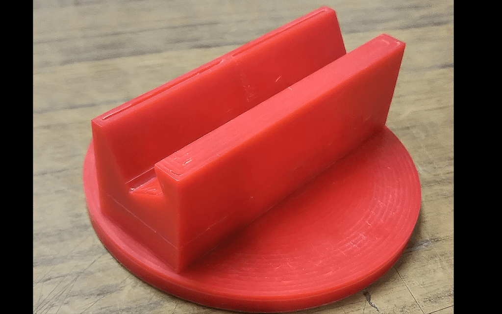 作成した図面を元に、弊社の3D5X-α(5軸制御型3Dプリンタ加工機)を使用してスマートフォンスタンドを製作していました。