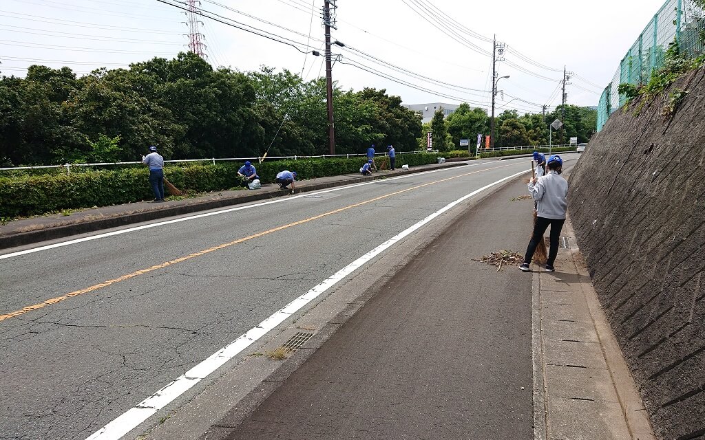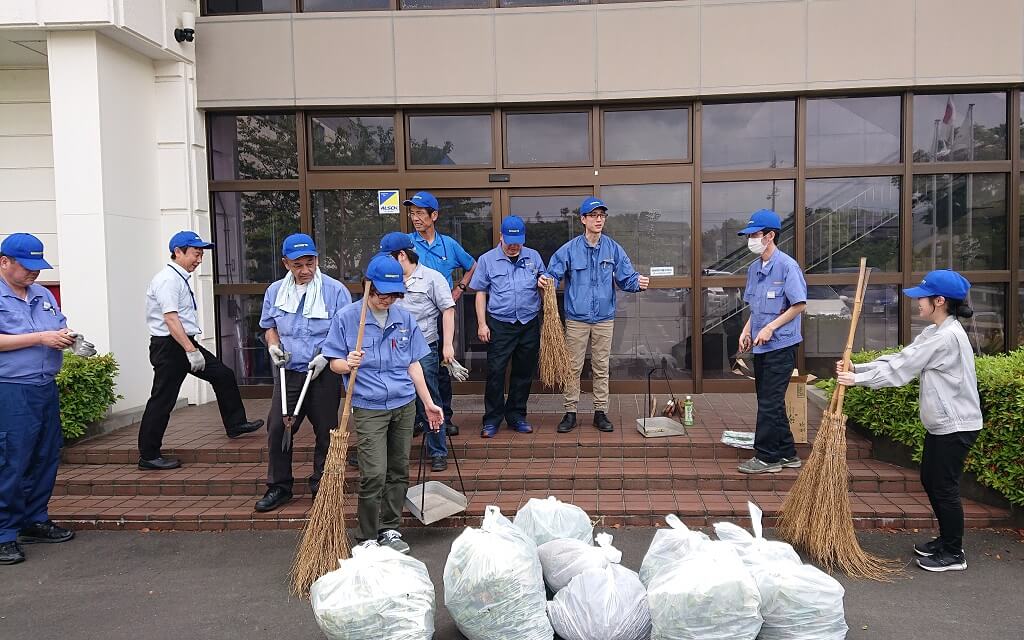 工場の外周道路にある生垣の手入れや落ち葉の清掃、草取りを行いました。