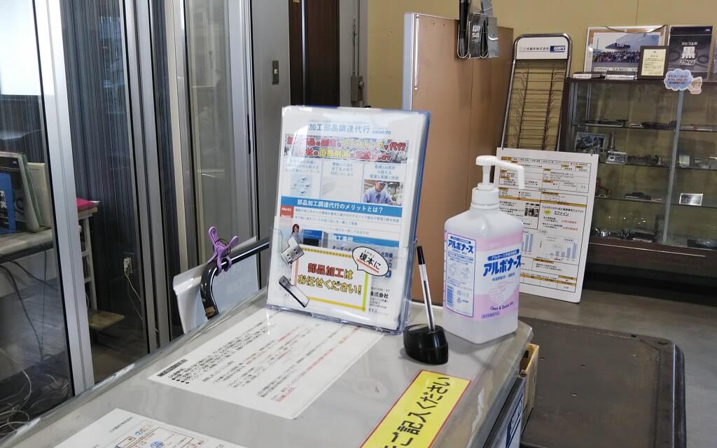 弊社が取り組んでいる加工部品調達代行のチラシを「三光製作株式会社」様に設置していただきました。