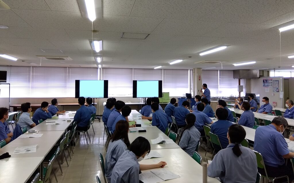 「第83期方針発表会」が開催されました 2023.06.07 Wed, 社内行事 毎年恒例の「方針発表会」が6月1日に開催されました。 例年同様、先期の業績報告と今期の経営方針を社長や各部門の代表者から発表がありました。 社員は、各自が所属している部内の今期活動目標などメモを取りながら聞いていました。 次の記事 > < 前の記事 ブログ一覧へ