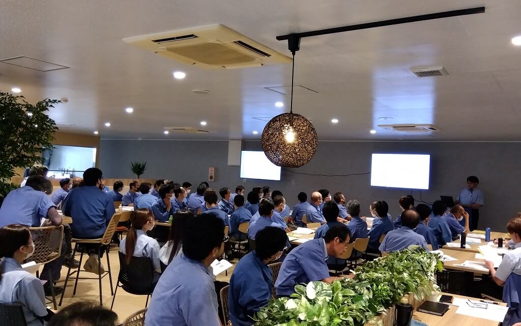 「第84期方針発表会」が開催されました 2024.06.06 Thu, レクリエーション 6月初めは、毎年恒例の「方針発表会」があります。 今回は、オープンしたての社員食堂にて「第84期方針発表会」が開催されました。 次の記事 > < 前の記事 ブログ一覧へ