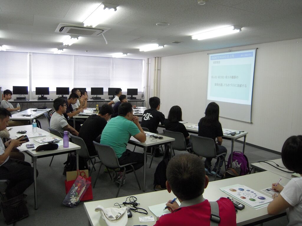 まず初めに、弊社の概略を説明し、2階の踊り場から工場全体を見渡してもらいました。