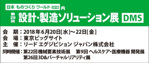 「第29回 設計・製造ソリューション展」2018年06月20日(水)~22日(金)に出展致します。 展示ブースは「東3ホール 小間番号...